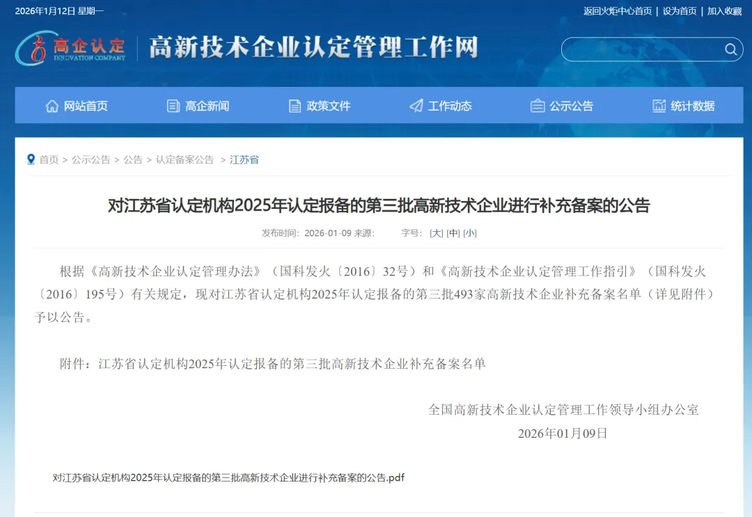 近日,全国高新技术企业认定管理工作领导小组办公室正式公布2025年度高新技术企业认定名单,淮安易云科技有限公司凭借扎实的科技创新能力、完善的研发管理体系和突出的科技成果转化成效,顺利通过国家级“高新技术企业”认定。这是公司继2019年首次获此殊荣后,再次成功通过复审,充分彰显了易云科技的科研投入水平和持续创新实力。