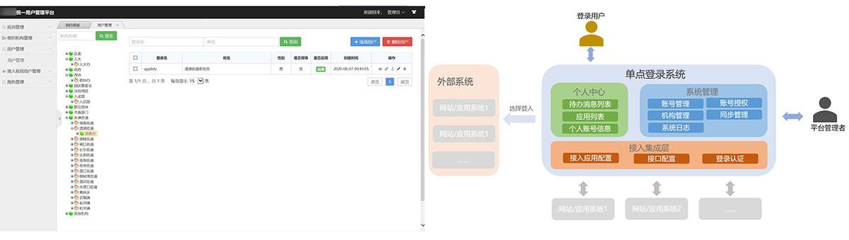 单点登录系统是一个用于整合各个应用系统的门户管理系统,实现“一键式”登录目标应用系统功能,提供统一用户账号、组织机构等基础性信息的管理,包括账号管理与同步、组织机构管理与同步、账号的应用使用权限授权与回收、应用注册等功能。
